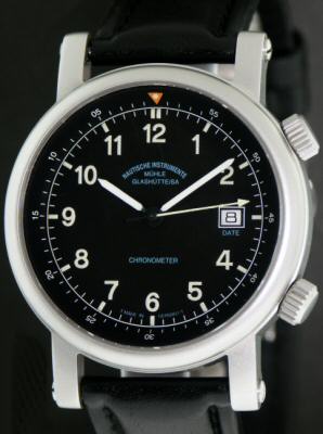 Muehle Glashutte Cockpit Timer Chronometer in sandblasted stainless steel case with inner rotating bezel via crown at "2", certified chronometer ETA2824 movement makes this 483/500 limited edition watch tick.