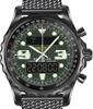 Breitling M7836522/L521 "Chronospace Blacksteel" all black/gray DLC case and mesh band, analog-digital sold out rare 1000 pc limited edition model with green dial, luminous hands, over-sized Arabic numerals and hour markers, with 1/1000th second chronograph, Countdown timer, Second time zone with independent alarm, UTC time, Backlight.