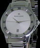 Swiss made quartz gentlemen`s dress "Miros" model by Maurice Lacroix with bold and elegant links on a stainless steel bracelet, flat silver dial with raised engraved chapter ring on top, right below the crystal