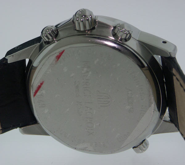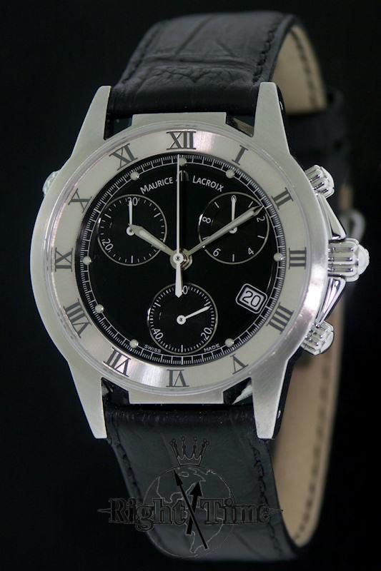 Elegant, yet sporty, Maurice Lacroix Swiss made quartz split second (two event timing) and fly-back functions chronograph model 81849.