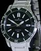Maurice Lacroix Miros Divers automatic, solid brushed finished stainless steel case with polished finished edges. Metallic black dial. Military dark green aluminum insert uni-direction rotating bezel. Applied polishes steel rimmed index hour markers with luminescent fill.
