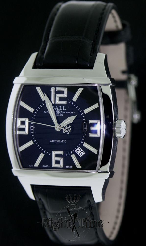 BALL Conductor Transcendent watch model NM2068D-LAJ-BK. Automatic ETA movement, stainless steel case, sapphire crystal, and micro gas tubes for night reading capability. Black textured dial. Brown Leather upper/rubber combination dress sport strap