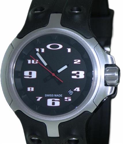 Oakley sport "Bottle Cap" Swiss made quartz model, featuring 46mm case and hex slot bolt held integrated rubber strap, black dial with oversized numbers and luminous hands, sapphire crystal