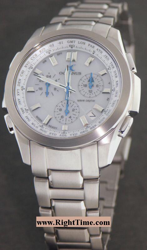 Oceanus Wave Ceptor, all titanium case and band, new 5 motor chronograph alarm technology, solar, radio controlled, with white dial