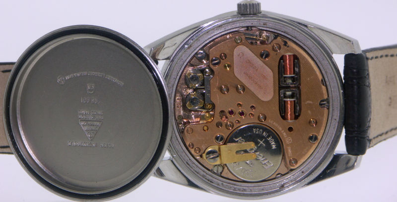 Omega Seamaster Electronic F300Hz powered by Accutron patented tuning fork Swiss made movement ESA caliber 9162. Steel case with silver dial on crocodile strap