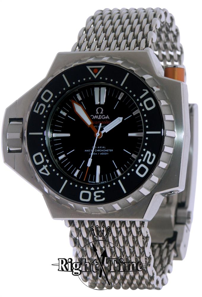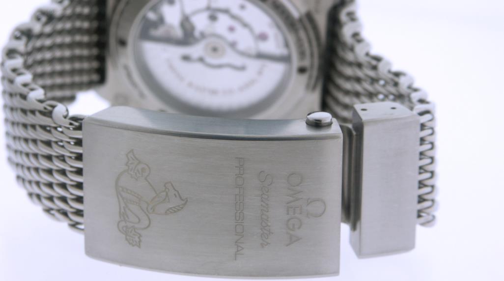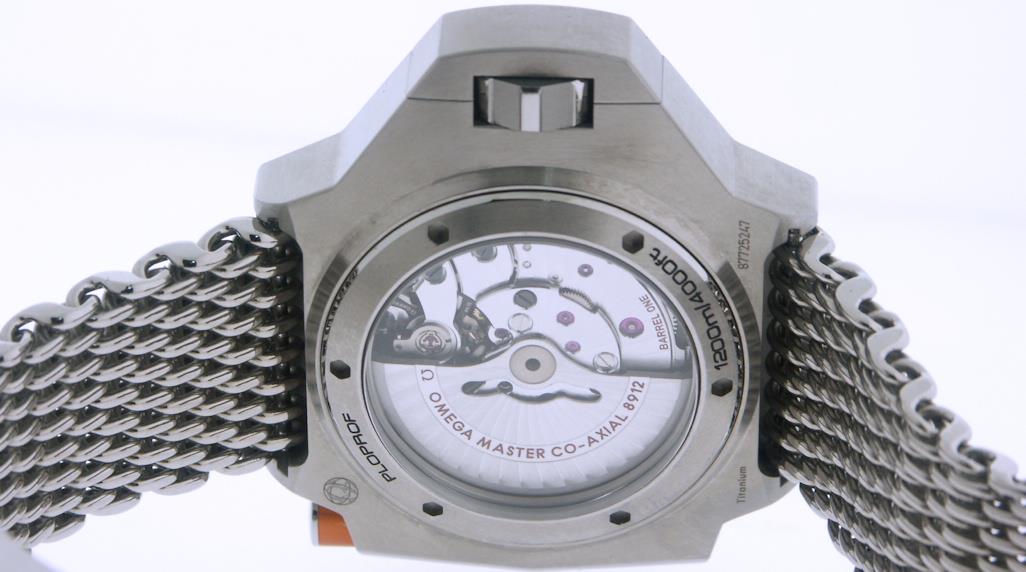 Seamaster Ploprof is Omega`s most water-resistant divers model 227.90.55.21.01.001, 1200M water resistant all grade 5 titanium 55 by 48mm case and grade 2 titanium `sharkproof` mesh bracelet, powered by Omega Co-Axial Master Chronometer Calibre 8912