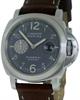 Officine Panerai Luminor Marina model PAM00086. Swiss made automatic movement with date and small seconds platform. Satin finished stainless steel case. Silver grey dial with silver color small seconds window. Sapphire crystal with built-in magnifier. Brown alligator factory strap with white stitches. Water resistant to 300 meters.