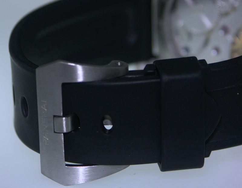 Officine Panerai, model PAM00118 -OP 6572 Limited Edition of 500 worldwide. Ultra lightweight titanium 300m case houses highly decorated and engraved Panerai Calibre OP II (base ETA 6497/2) manual wind movement. Black dial with Luminova luminous hands and markers on black rubber strap.