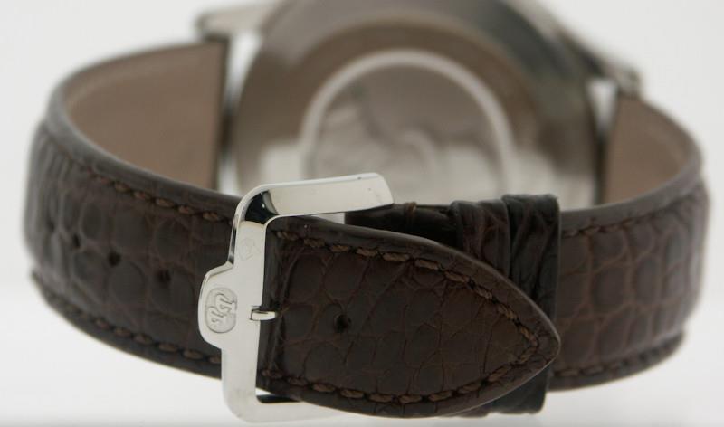 Paul Picot `Gentleman 42` dress model with cream color/ivory dial rose applied markers and hands on brown alligator strap