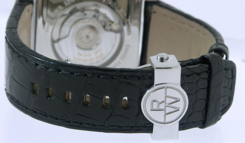 Raymond Weil `Don Giovani` rectangular Jump hour automatic, black and silver guilloche dial on black 28mm alligator strap