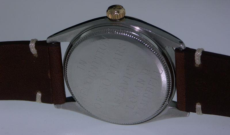 Rolex Oyster Perpetual 6565 steel case with solid gold bezel, powered by Rolex 1030 movement, very unique custom made 30yr anniversary at Halliburton edition dial