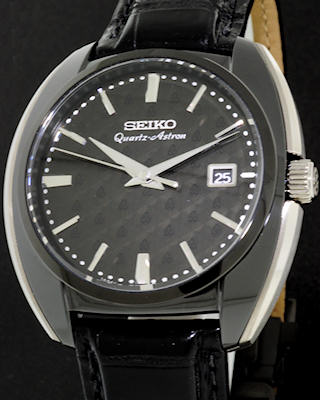 Re-production of iconic model. This model commemorates 40th anniversary of Seiko’s introduction of the first commercial quartz watch, with a 2009 limited edition of 200 worldwide and only 40 in the US. Astron pays homage not only to the original design, but also to the pioneering spirit and innovation of its predecessor. The caliber 9F powering this piece sets a new standard in quartz technology.