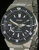 Seiko Prospex Spring Drive GMT Caliber 5R66 model SBDB017 with power reserve indicator, 24-hours second time zone hands, and center second hand. Dia shield coated titanium case and watch bracelet with deployment buckle. Black dial with date calendar and 72 hours power reserve indicator. Sapphire crystal. Water resistant to 200 meters.