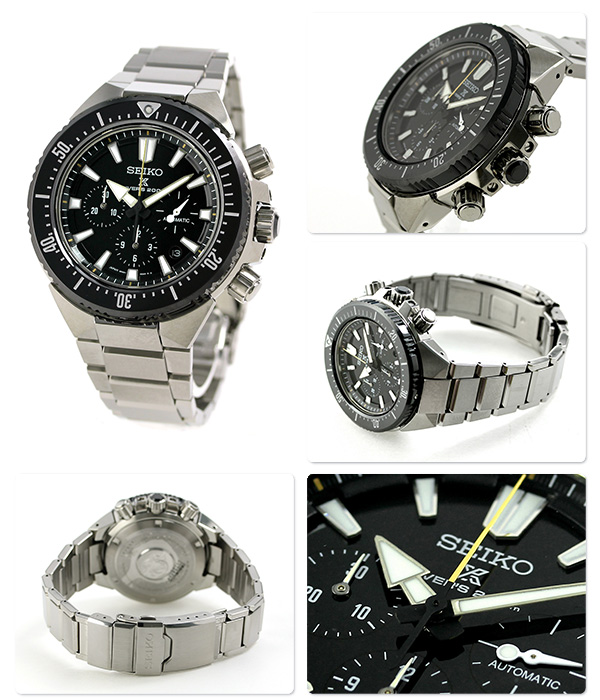 Seiko Prospex Transocean Diver watch model SBEC001 powered by automatic chronograph movement with manual winding mechanism. Stainless steel case and bracelet. One-way rotating 0-60 black zirconia ceramic bezel. Black color dial with date calendar and large luminous hands and markers. Water resistant to 200 meters.
