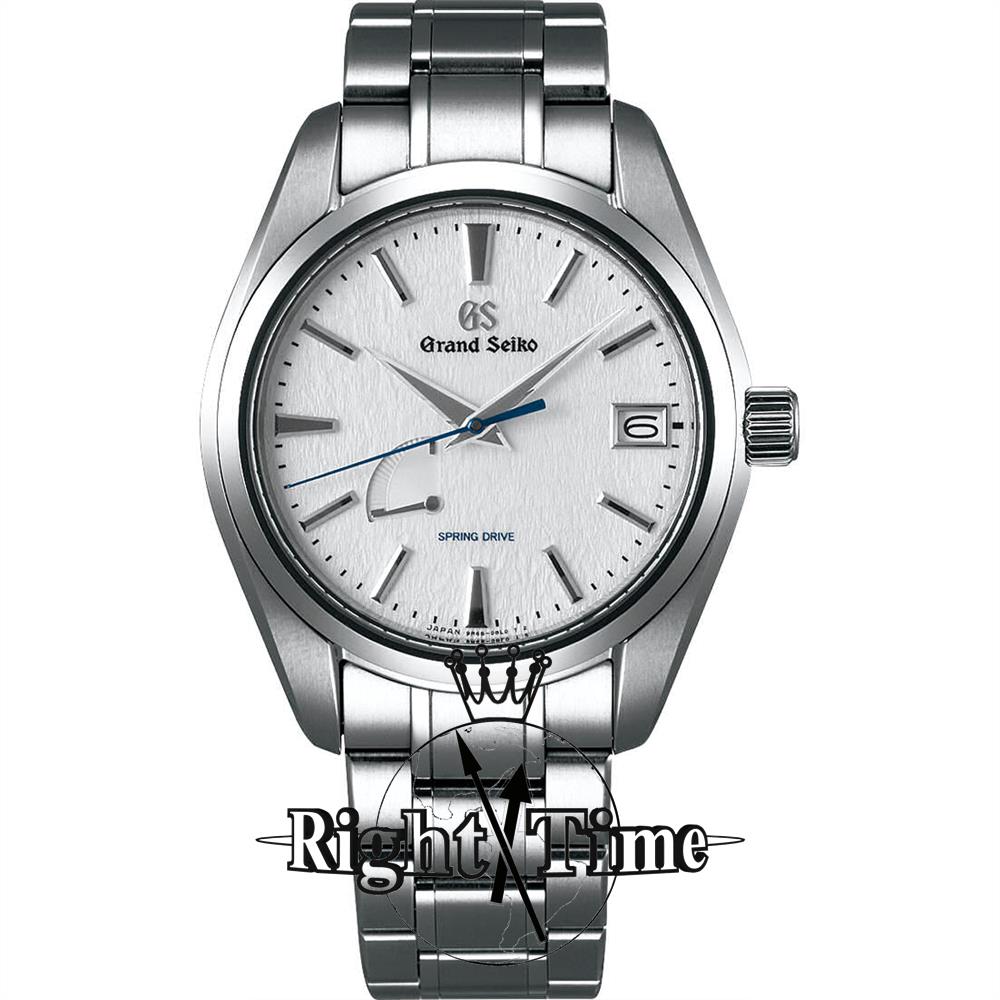 Grand Seiko all high intensity titanium case and band, powered by Spring Drive 30 jewels caliber 9R65 and featuring unique scrunched up "snowflake" silver dial pattern.