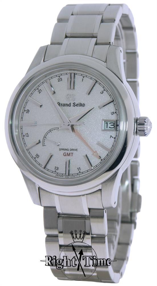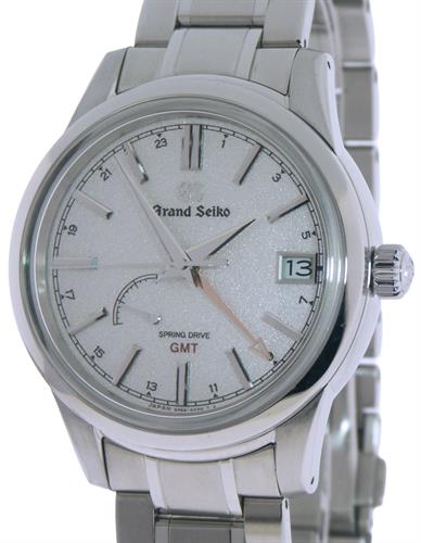 Grand Seiko Elegance ever-changing seasons collection model SBGE269. Toji one of the year`s 24 seasonal phases or sekki. Silver textured dial with golden GMT hand represent the arrival of winter solstice: air is crisp and clear, snow covers the landscape, last rays of the evening sun in a sky. Seiko Spring Drive caliber 9R66. All stainless steel case and bracelet. Sapphire crystal and observation back.