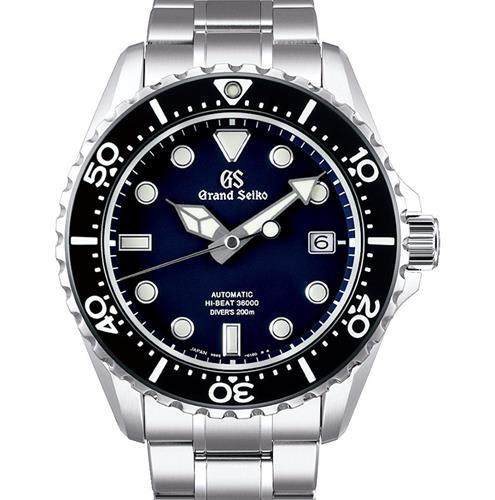 Grand Seiko Sport Collection. Watch model SBGH289. Hi-Beat 36,000 Automatic movement. Blue dial with date and silver tone luminous index markers. Steel case with bracelet. Sapphire crystal. Water resistant to 200 meters
