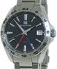 Grand Seiko Quartz GMT model SBGN005. Grand Seiko Caliber 9F quartz. Each quartz oscillator is specially selected to allow the achievement of an annual accuracy of ±10 seconds. Solid stainless steel case and bracelet. Fixed 24 hour steel bezel. Blue dial with polished steel tone hands and markers. Red GMT hand. Sapphire crystal. Water resistant to 100 meters.