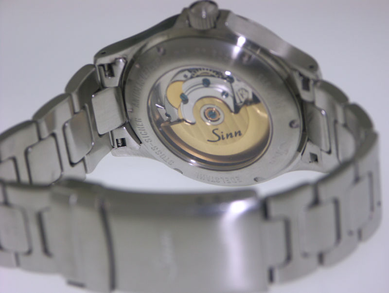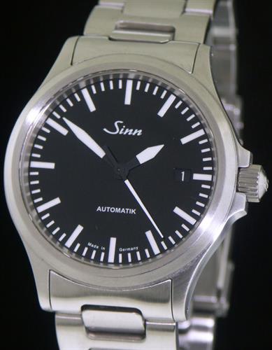 Sinn classic automatic 556 sport model with easy to read black luminous dial, all stainless steel case and bracelet, 200m water resistant dress/sport model with observation back