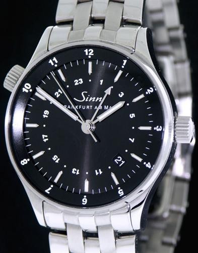 German manufacturer from Frankfurt Am Main, started by Helmut Sinn in 1961, still continuing strong today in the pilot watch tradition started by its founder. This is a dress "Frankfurt Three Time Zone" model featuring 24 hour black dial and inner rotating 12 hour bezel, powered by ETA 2893-2 automatic movement