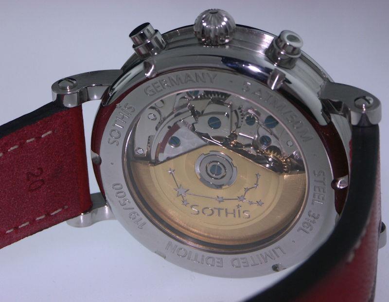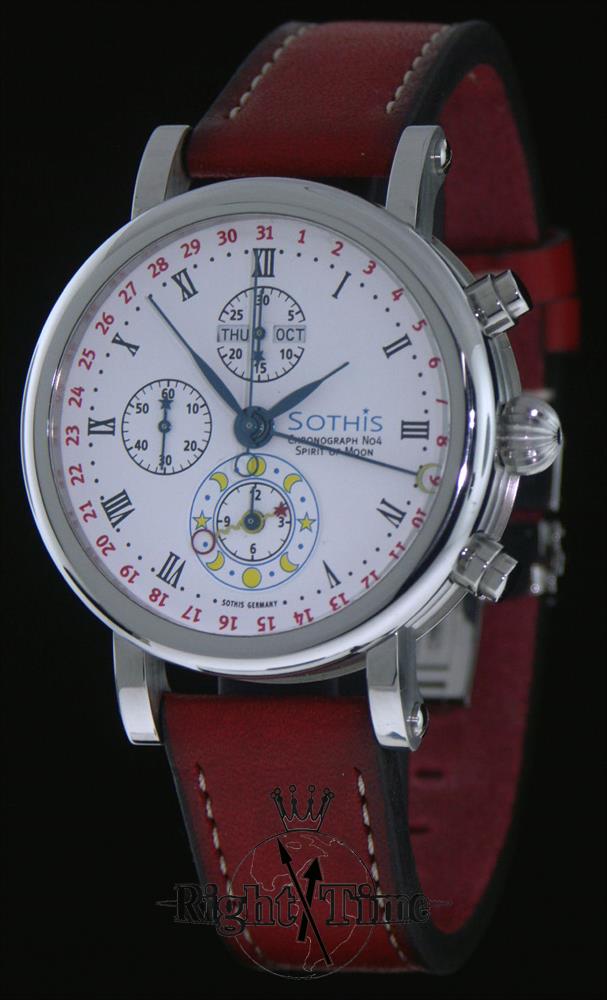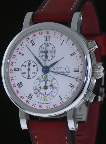 German Wolfgang Steinkrüger`s Sothis brand, collection `Spirit of the Moon` with automatic chronograph, triple date and moon phase indicators along with 12 hrs, 30 min and 60 seconds registers on leather strap