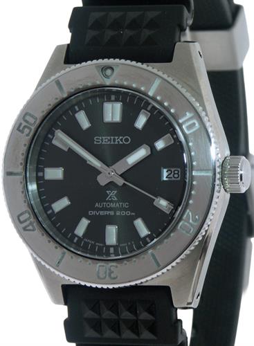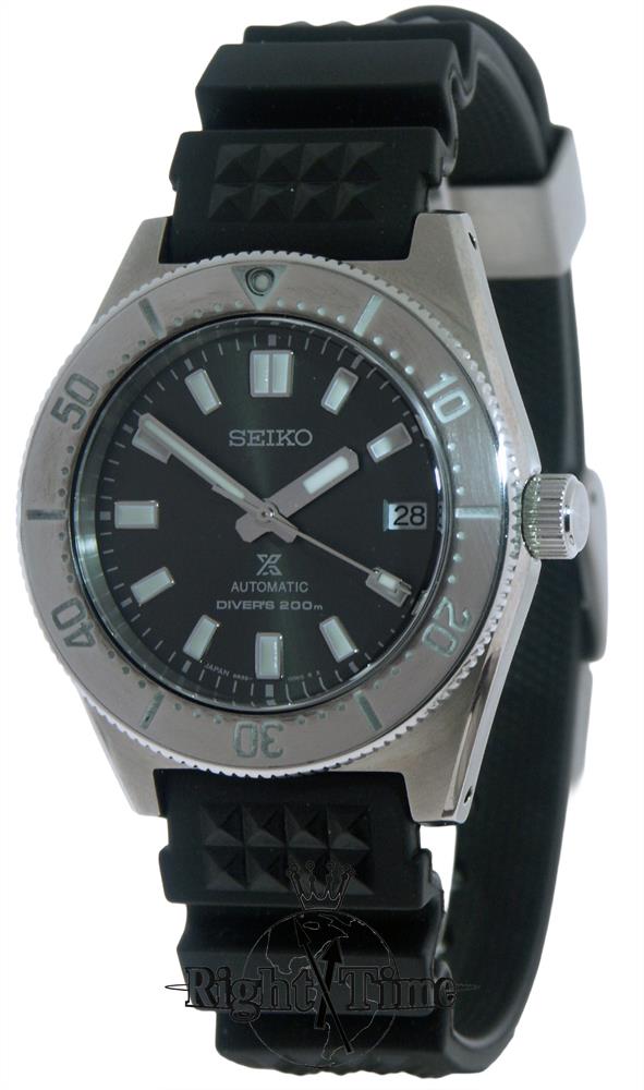 Seiko Prospex Diver SPB143. 62Mas Modern Re-edition. Powered by Seiko Calibre 6R35 automatic movement. Stainless steel case on rubber strap. Grey dial with large luminous hands and markers. 200 meters water resistant.