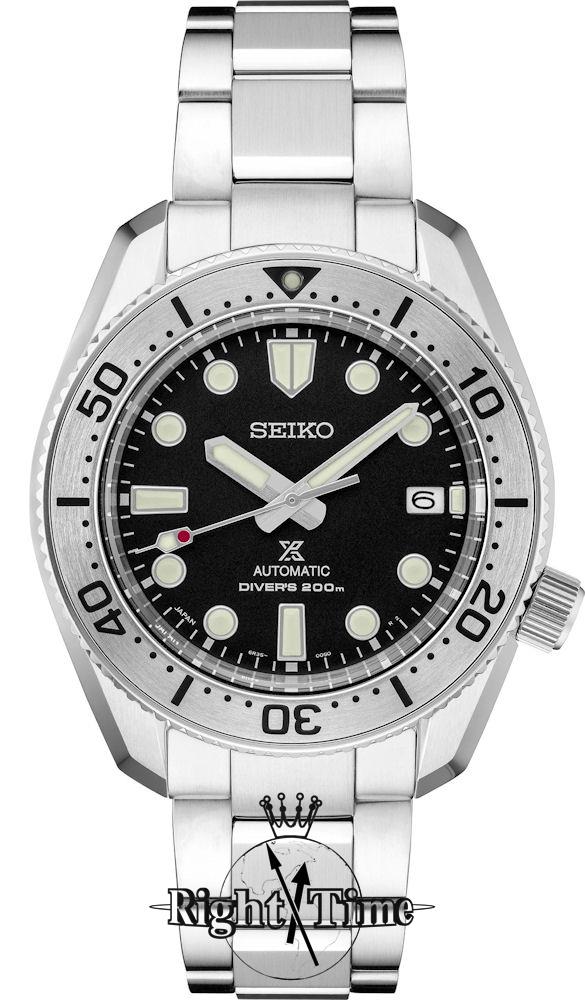 Seiko Prospex 1968 Diver watch model SPB185. Powered by Seiko Calibre 6R35 automatic movement. Stainless steel case with bracelet. 0-60 rotating bezel. Black dial with large luminous hands and markers. 200 meters water resistant.