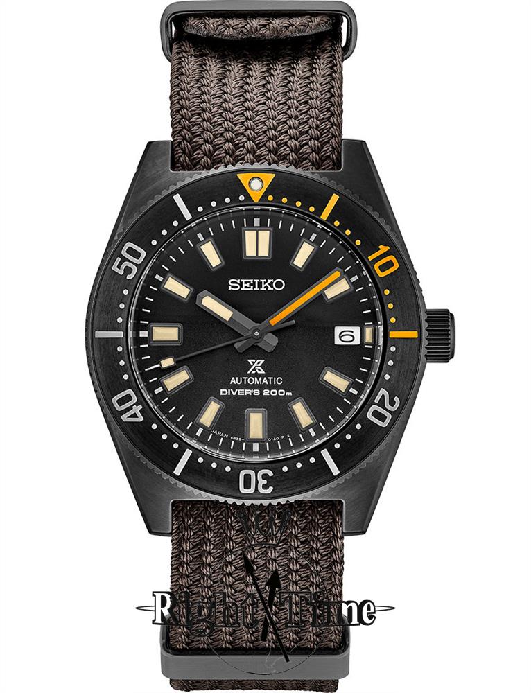 Seiko Prospex "Black Series" model SPB253. Limited edition of 5500 pieces. Japanese automatic 6R35 automatic movement. Stainless steel case with black PVD coating. PVD coated uni-directional bezel with a hint of orange accents. Black dial with aged color LumiBrite painted hands and markers. Comes in a set with both a brown NATO style nylon and black silicone rubber strap. Sapphire crystal. Diver rated to 200meters water resistant.