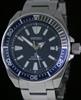 Seiko Prospex model SRPB49. Japanese Seiko 4R35 automatic movement housed in the new "Samurai" style stainless steel case. Blue dial with a blue/grey rotating bezel. Date function. Comes on a stainless steel bracelet. Water resistant to 200m.