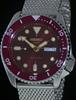 Seiko 5 SRPD69 sport street style wrist watch 100m water resistant, powered by SEIKO 24 jewels 4R36 Japanese Automatic movement with Day/Date calendar. Stainless steel case with uni-directional rotating black insert 0-60 bezel and mesh style steel bracelet. Red color dial with Lumibrite gold tone hands and markers.