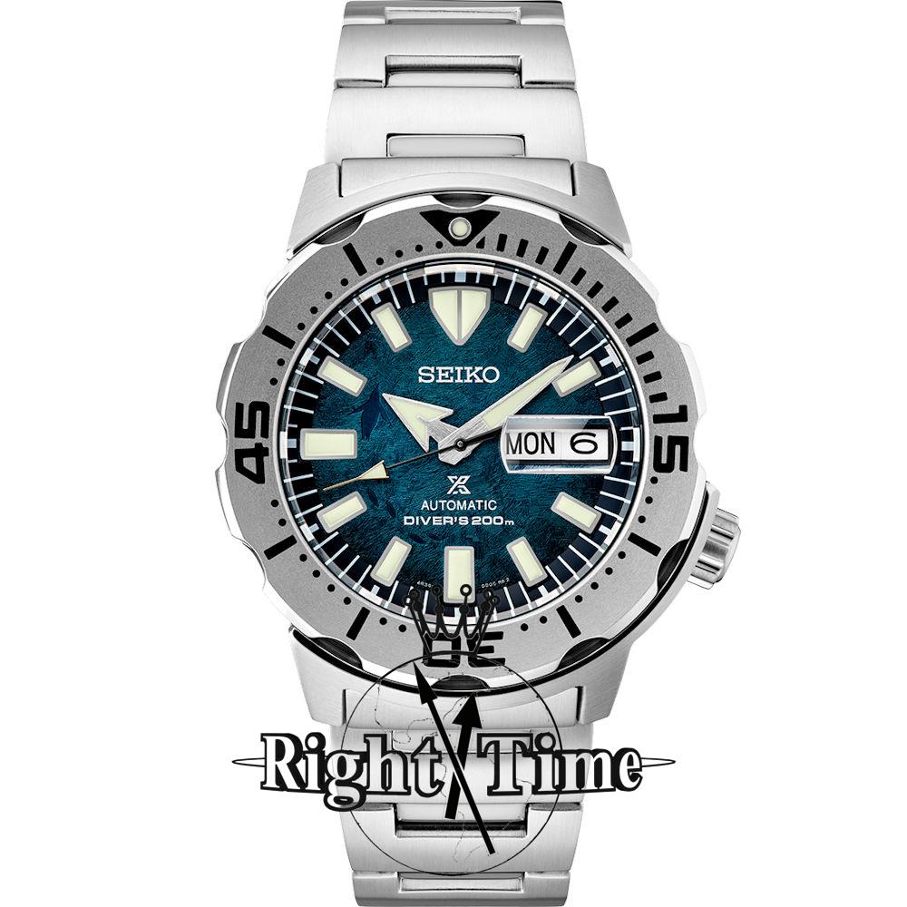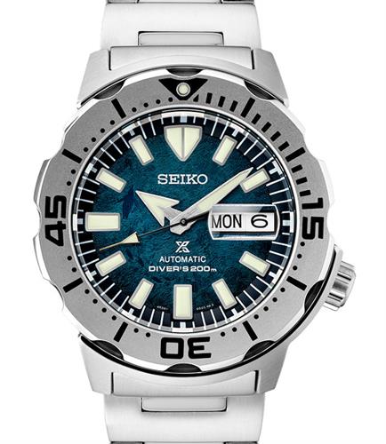 Seiko Prospex model SRPH75. Save-the-ocean Antarctica special edition. Seiko solid stainless steel case. Japanese Caliber 4R36 automatic movement. Special edition penguin theme textured blue dial with luminous hands and markers. Ratcheted rotating bezel. Dive rated to 200 meters water resistant.