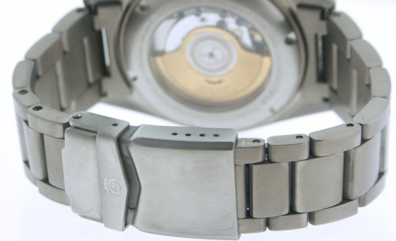 Titanium. Oyster style links. Satin finish. Watch with bracelet comfortably fits wrist size:. 7 1/4".