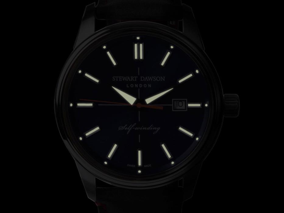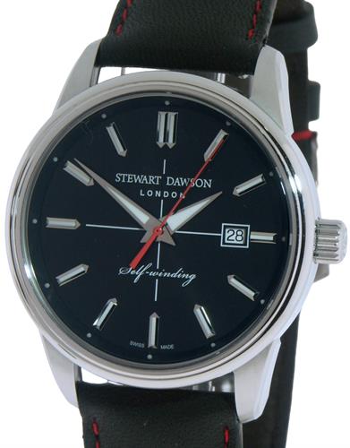 British watch with Swiss heart, Stewart Dawson `KnightsBridge` classic 42mm gentlemen`s model with black dial, powered by Sellita SW200 automatic movement