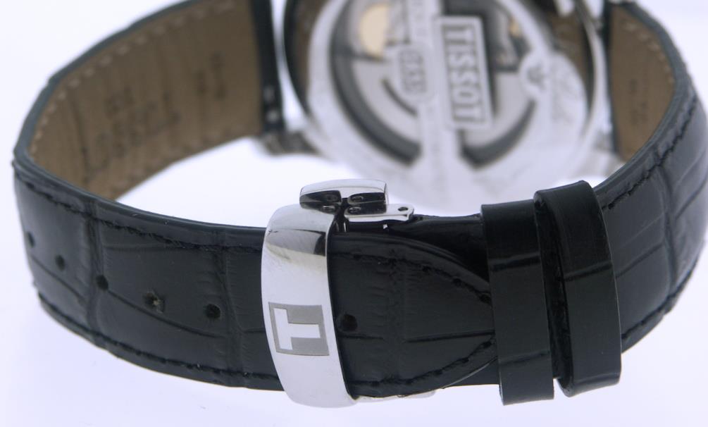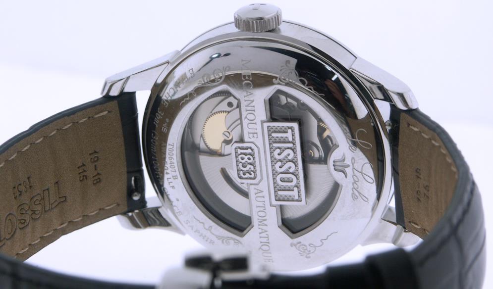 Tissot Le Loche model T006.407.16.033.00. Swiss made powermatic automatic movement with 80 hour power reserve. Solid stainless steel case. Silver dial with Roman numerals. Sapphire crystal. Black alligator texture leather strap.