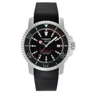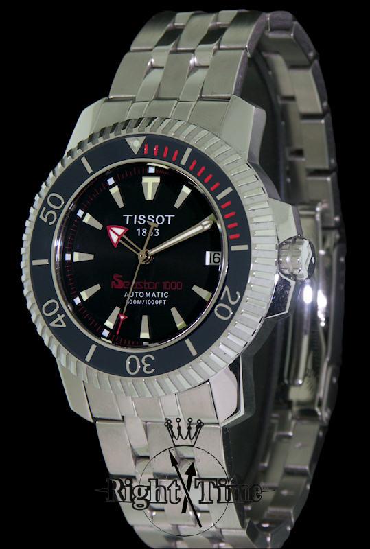 Tissot 1000 Automatic Diver Seastar. Black dial with silver markers. Luminous tips on hands and markers allow for awesome underwater visibility. Unidirectional black divers bezel. Spherically domed sapphire crystal. Elegant satin/highly polished finished stainless steel case and bracelet. Swiss ETA 2824-2 automatic movement.