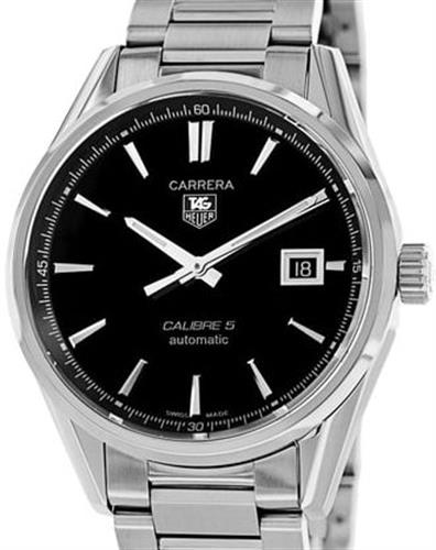 Tag Heuer Carrera, model WAR211A. Swiss made Calibre 5 automatic movement with a 38 hour power reserve. All stainless steel 39mm case & combination finish bracelet. Black dial with polished steel tone markers and hands. Scratch resistant sapphire crystal.