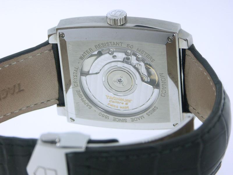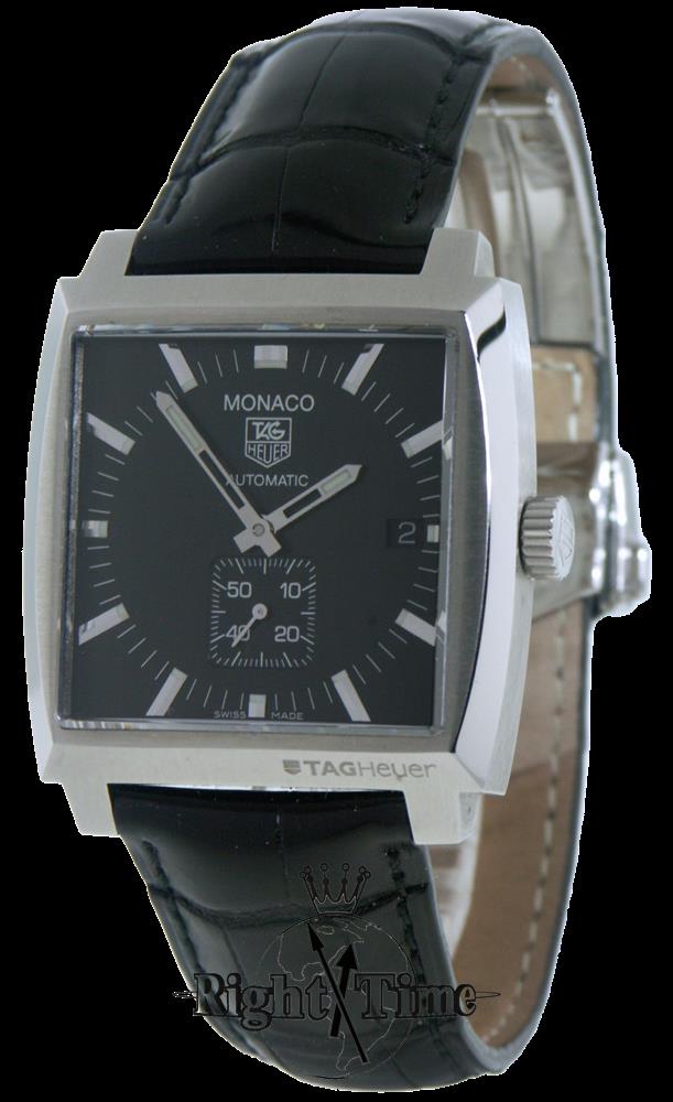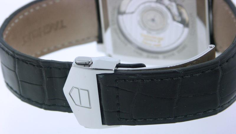 Tag Heuer square "Monaco" Swiss made automatic Calibre 6 with small second hand, solid stainless steel case with black alligator strap on deployant clasp.