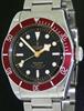 Tudor Heritage Black Bay automatic, model 79220R. Powered by a Swiss ETA Caliber 2824 movement. Solid stainless steel case and bracelet. Uni-directional stainless steel bezel with burgundy 60 minute ring. Black divers dial with luminous hands and markers. Domed sapphire crystal.
