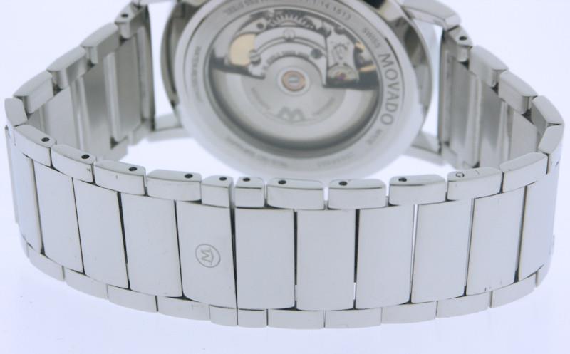 Fixed position (stationary). Satin finish. Engraved Roman numerals