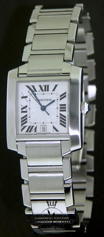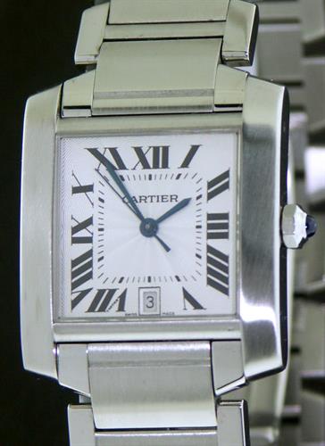 Classic and elegant Cartier "Tank Francaise W51002Q3" Swiss made automatic in stainless steel case and band, with silver guilloche dial with Roman numerals