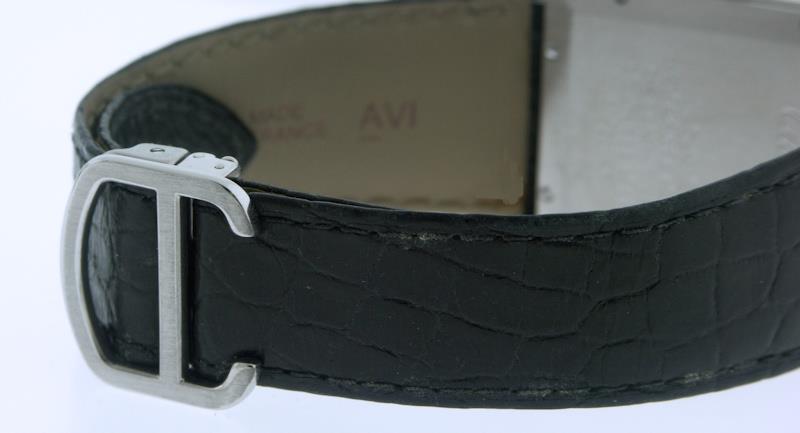 Cartier "Tank Solo XL" silver dial with classic black Roman numerals, all stainless steel 41 X 31mm case on black factory crocodile leather strap