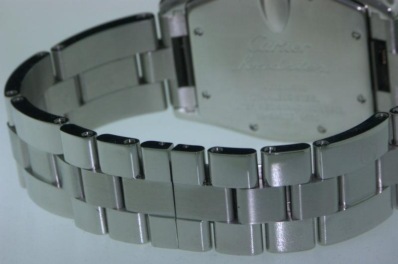 Combination satin/polished finish. Solid AISI 316L stainless steel. Additional brand new black Cartier leather strap on deployant buckle with easy click-in feature is included.