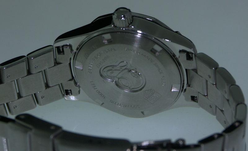 Tag Heuer Aquaracer sport model WAF1417.BA0823. Solid stainless steel 27mm case & bracelet. Blue mother-of-pearl dial with steel tone hands and markers. Polished uni-directional bezel. Swiss made quartz analog movement. Sapphire scratch resistant crystal. Water resistant to 300 meters.