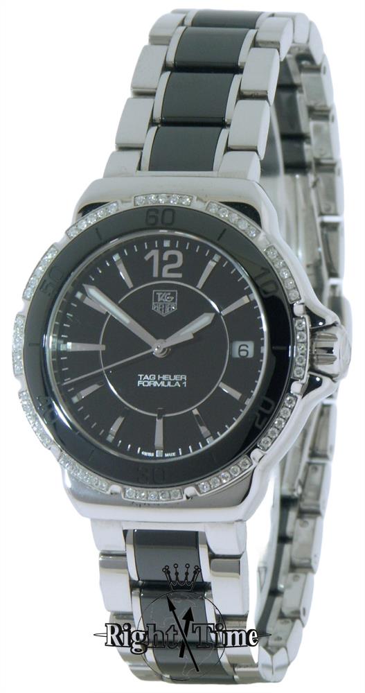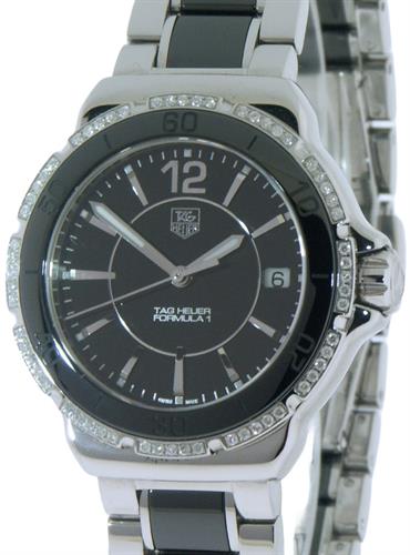 Ladies quartz sport WAH1212.BA0859 Tag Heuer "Formula 1 ceramic" with black dial, polished markers, black ceramic bezel and band link inserts and full diamond set bezel