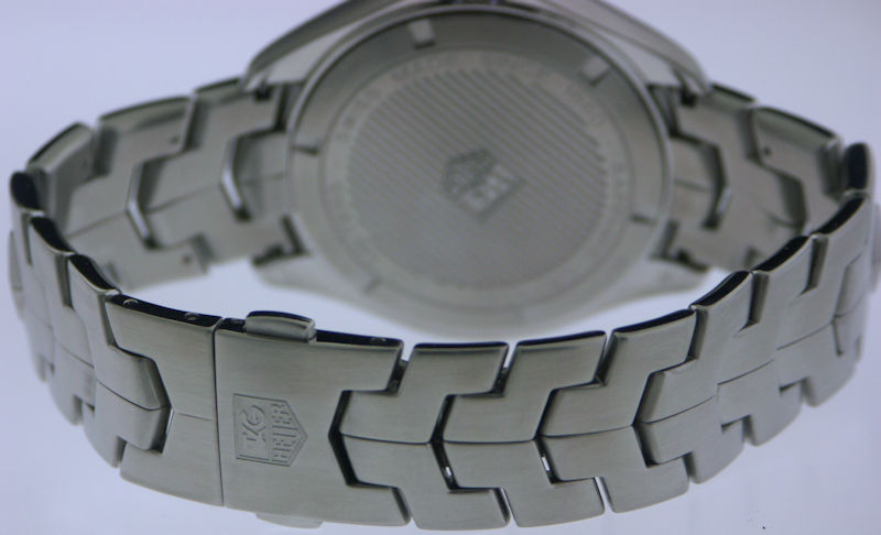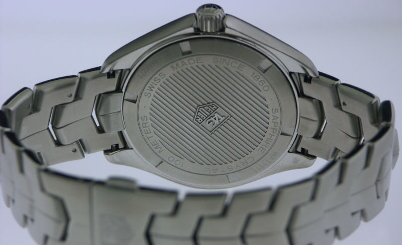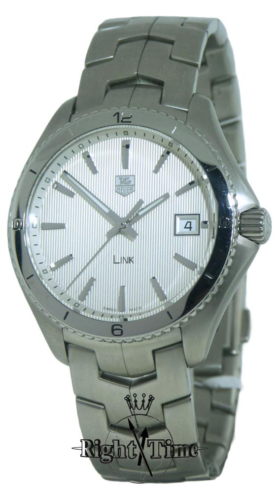 Tag Heuer Link, model WAT1111.BA0950. Textured silver dial. Swiss made Quartz analog movement. Stainless steel case and bracelet. Polished steel bezel with 12 hour scale. Sapphire crystal.