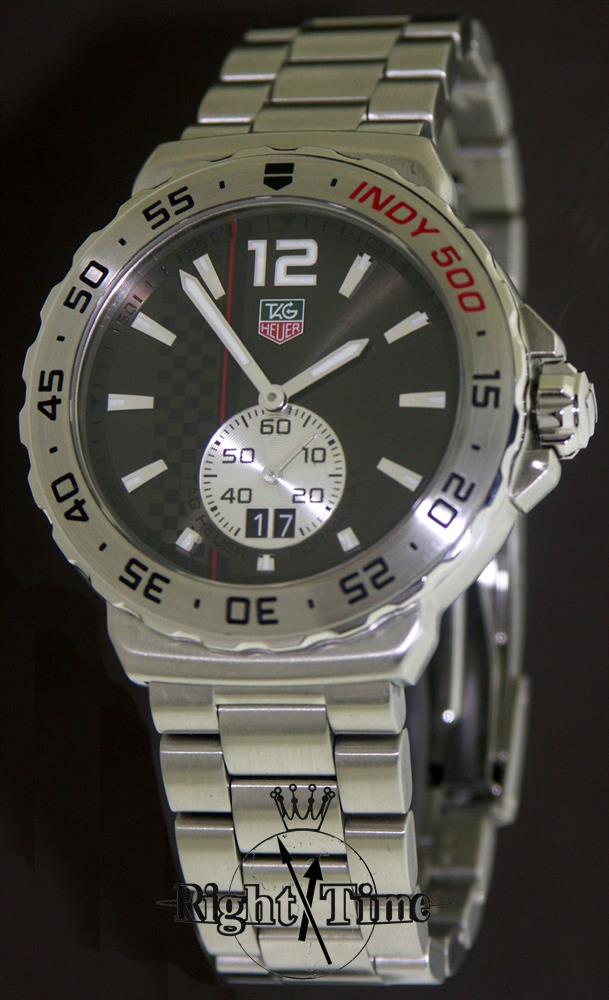 Tag Heuer Vodafone/McLaren/Mercedes "Formula 1 Indy500" collection Swiss made quartz sport "Big Date" with brown dial in satin finish steel case and steel rotating bezel, stainless steel bracelet.