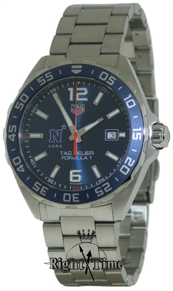 Tag Heuer Professional "Formula 1" collection WAZ1010.BA0842 model, Swiss made quartz model with blue dial and Navy Academy logo in satin/polish finish steel case and steel rotating bezel, stainless steel bracelet.