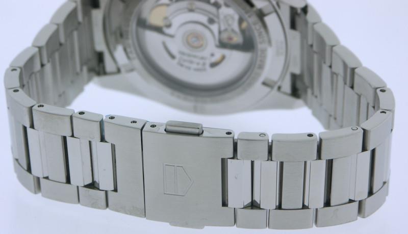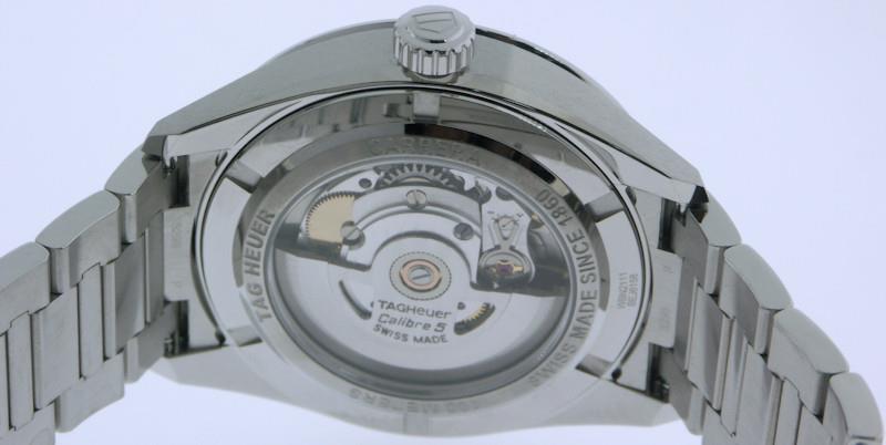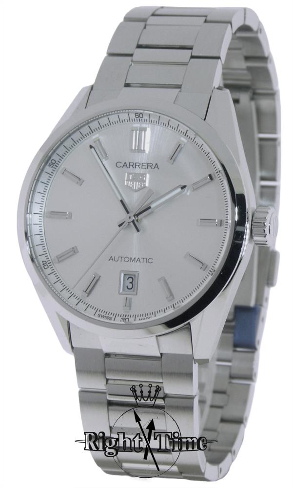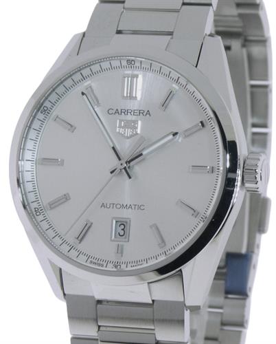 Elegant and classic, from the famous sport watchmaker Tag Heuer comes this Carrera WBN2111.BA0639 model in polished stainless steel 39mm case with bracelet, silver dial with date at 3 o`clock position, steel luminous hands and hand applied hour markers, scratch resistant sapphire top crystal and back. Heuer calibre 5 automatic movement.