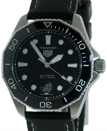 Tag Heuer Aquaracer Professional model WBP201A.FT6197. Powered by a Swiss made automatic Calibre 5 (based SW200). Black textured dial with luminous hands and markers. Solid stainless steel case and rubber strap by Bonetto Cinturini. Sapphire crystal. Uni-directional bezel with black ceramic insert. Water resistant to 300 meters.