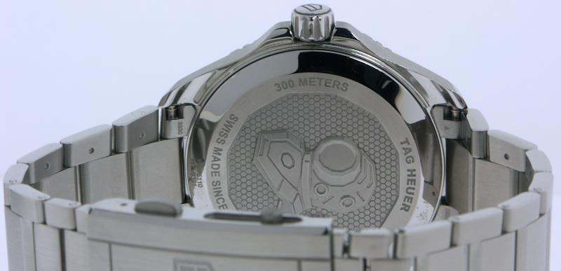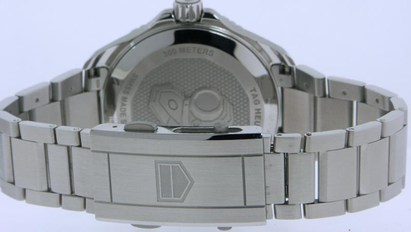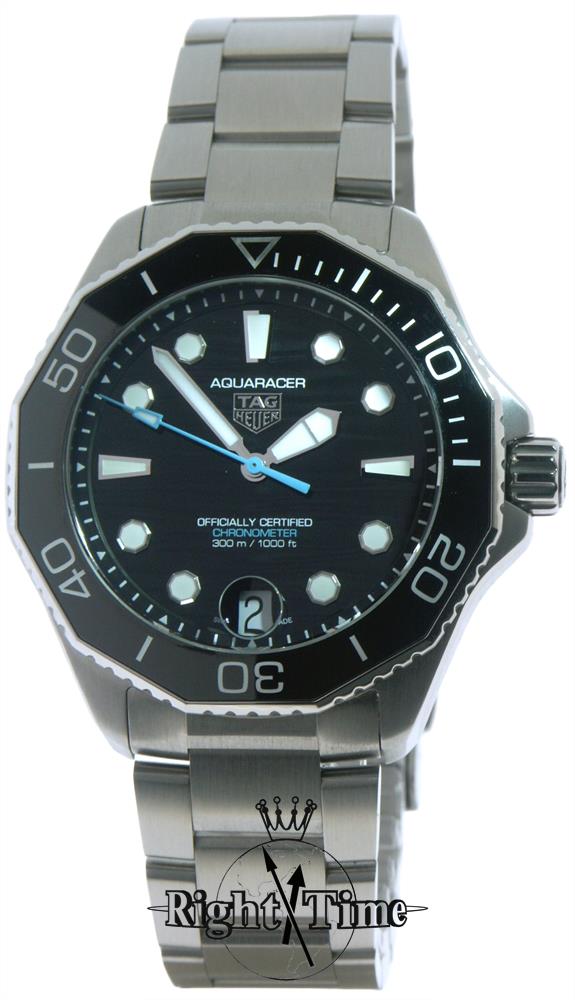 Tag Heuer Aquaracer model WBP5110.BA0013. Swiss made automatic chronometer movement with 80 hour power reserve. Solid stainless steel case & bracelet. Black wavy pattern dial with luminous white Super-LumiNova-filled indexes and hands. Uni-directional bezel with black ceramic 60 minute insert. Dive rated to 300 meters. Sapphire scratch resistant crystal.